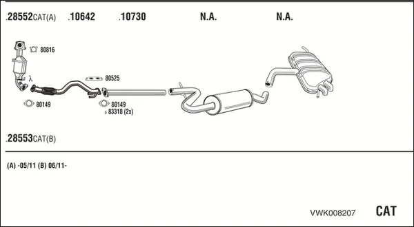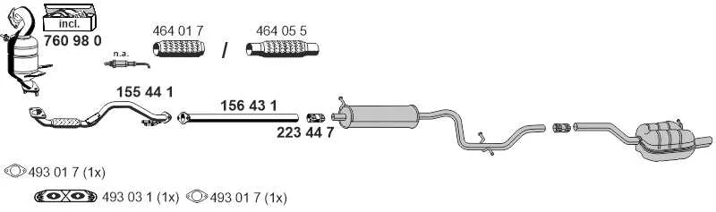VW GOLF VI Kabriolet (517) 1.2 TSI - Výfukový systém - kompletní od 3/2011 do 5/2016, 1197 ccm, 77 kW, 105 hp, CBZB, Kabriolet