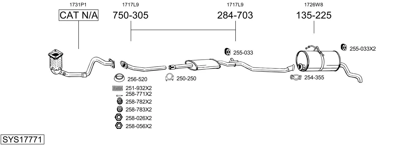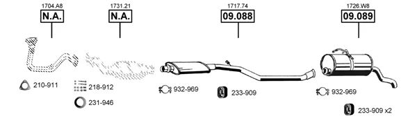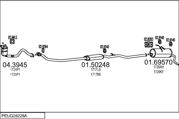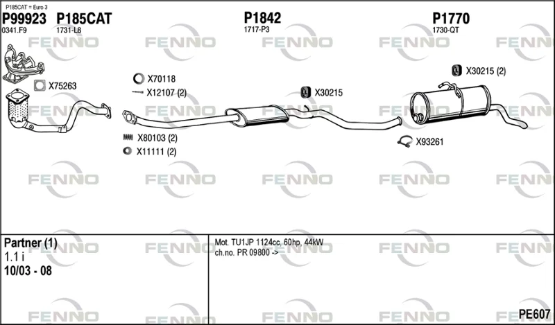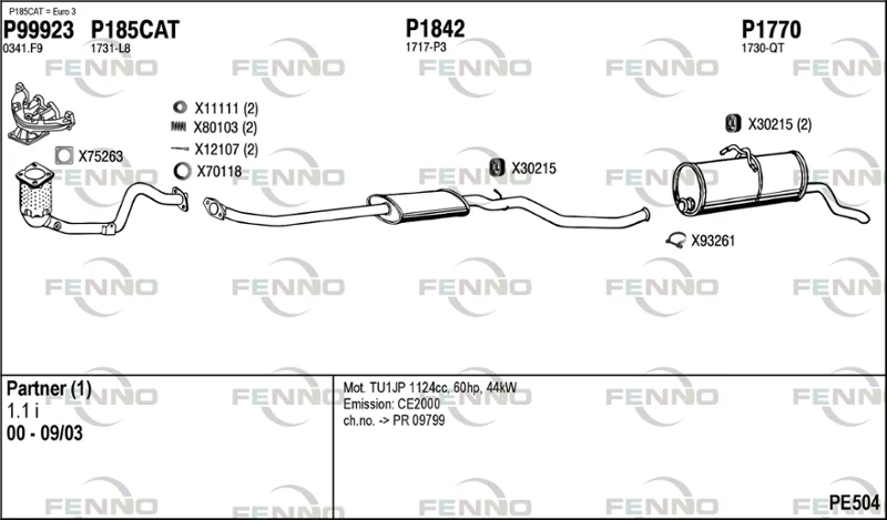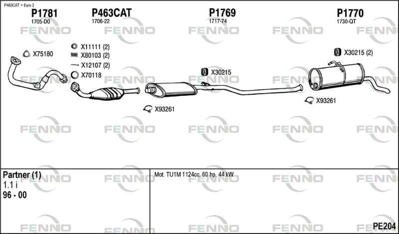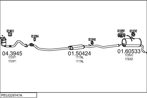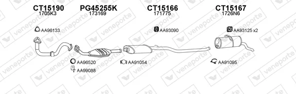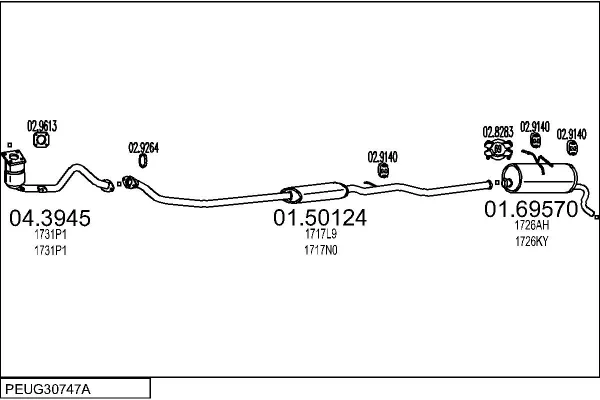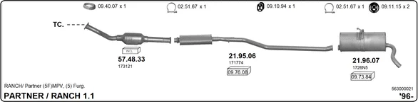 PEUGEOT PARTNER velkoprostorová limuzína (5_, G_) 1.1 - Výfukový systém - kompletní od 6/1996 do 10/2002, 1124 ccm, 44 kW, 60 hp, HDZ (TU1M), HFX (TU1JP), velkoprostorová limuzína