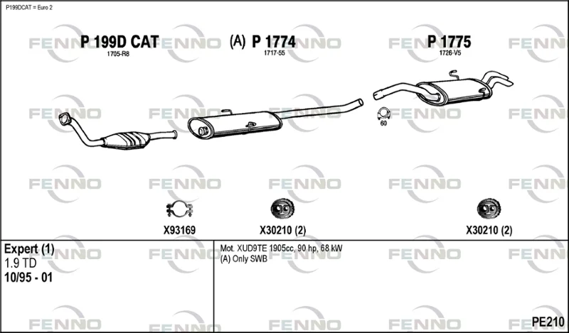 PEUGEOT EXPERT valník/podvozek (223) 1.9 TD - Výfukový systém - kompletní od 2/1996 do 9/2000, 1905 ccm, 66 kW, 90 hp, DHX (XUD9TE), valník/podvozek