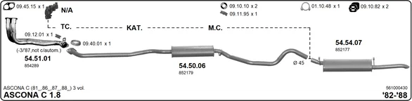 OPEL ASCONA C (J82) 1.8 (F11, M11, F68, M68) - Výfukový systém - kompletní od 9/1987 do 8/1988, 1796 ccm, 62 kW, 84 hp, E 18 NV, limuzína