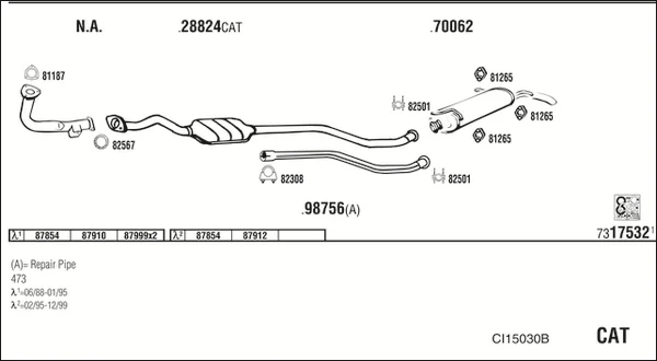 CITROËN AX (ZA-_) 10 - Výfukový systém - kompletní od 2/1987 do 12/1998, 954 ccm, 37 kW, 50 hp, CDZ (TU9M), Šikmá zadní část