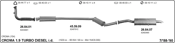 FIAT CROMA (154_) 1900 Turbo D i.d. (154.LL, 154.PL) - Výfukový systém - kompletní od 8/1987 do 10/1992, 1929 ccm, 66 kW, 90 hp, 154 C6.000, Šikmá zadní část