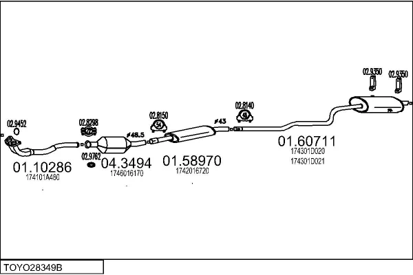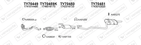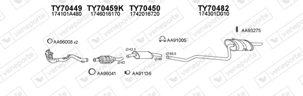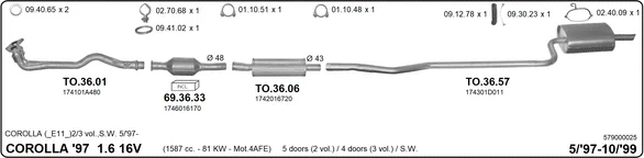 TOYOTA COROLLA Liftback (_E11_) 1.6 (AE111_, AE111R) - Výfukový systém - kompletní od 5/1997 do 8/2001, 1587 ccm, 81 kW, 110 hp, 4A-FE, Šikmá zadní část