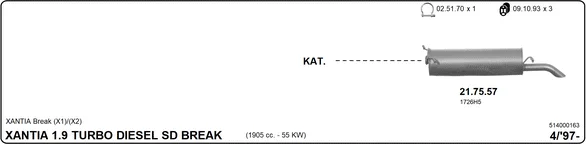 CITROËN XANTIA Break (X1_, X2_) 1.9 SD - Výfukový systém - kompletní od 4/1997 do 4/2003, 1905 ccm, 55 kW, 75 hp, DHW (XUD9SD), kombi