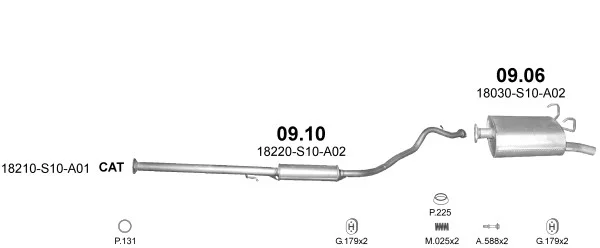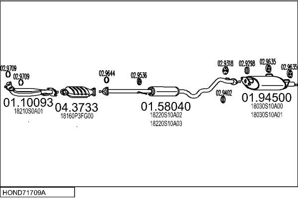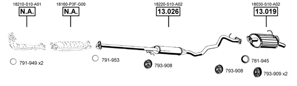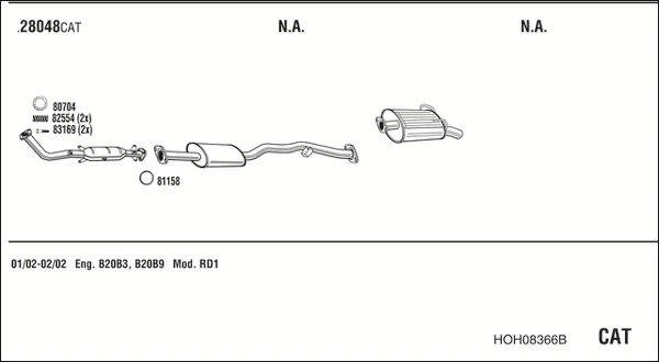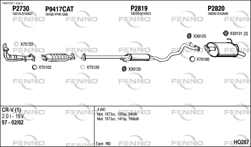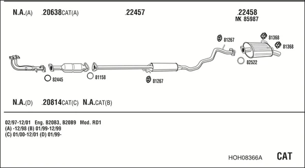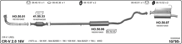 HONDA CR-V I (RD) 2.0 16V 4WD (RD1, RD3) - Výfukový systém - kompletní od 10/1995 do 12/2001, 1973 ccm, 94 kW, 128 hp, B20B, SUV