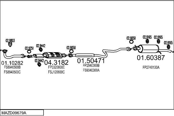 MAZDA 626 V (GF) 2.0 (GFEP) - Výfukový systém - kompletní od 5/1997 do 10/2002, 1991 ccm, 85 kW, 115 hp, FS, limuzína