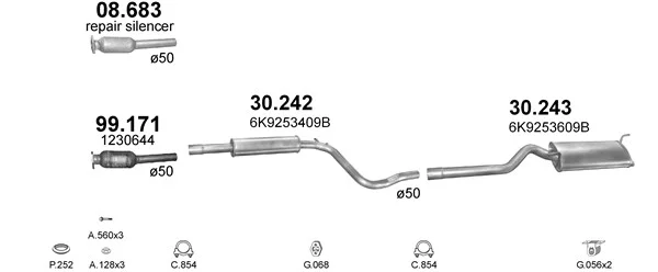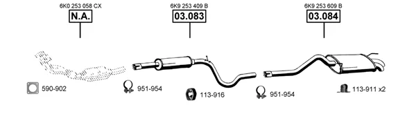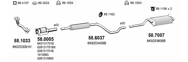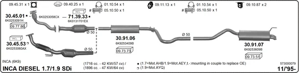 SEAT INCA (6K9) 1.7 D - Výfukový systém - kompletní od 9/1996 do 6/2003, 1715 ccm, 42 kW, 57 hp, AHB, karoserie/kombi