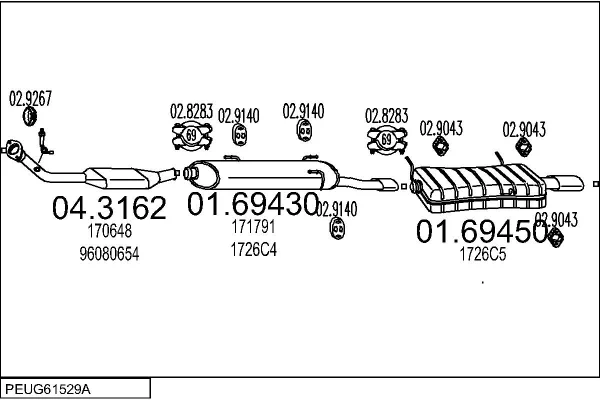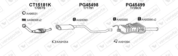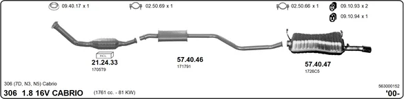 PEUGEOT 306 Kabriolet (7D, N3, N5) 1.8 16V - Výfukový systém - kompletní od 5/1997 do 4/2002, 1761 ccm, 81 kW, 110 hp, LFY (XU7JP4), Kabriolet