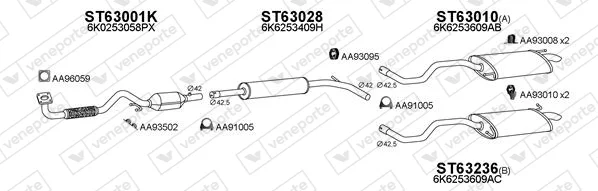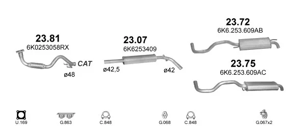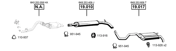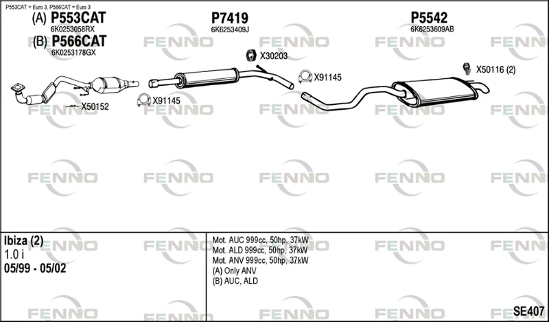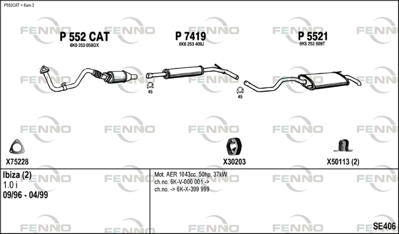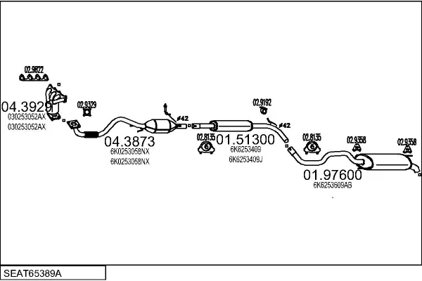 SEAT IBIZA II (6K1) 1.0 i - Výfukový systém - kompletní od 9/1996 do 2/2002, 999 ccm, 37 kW, 50 hp, AER, ALD, ANV, AUC, Šikmá zadní část