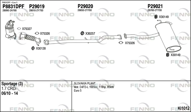 KIA SPORTAGE III (SL) 1.7 CRDi - Výfukový systém - kompletní od 12/2010 do 12/2015, 1685 ccm, 85 kW, 116 hp, D4FD, SUV