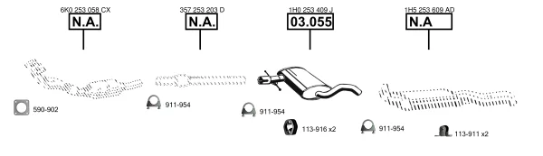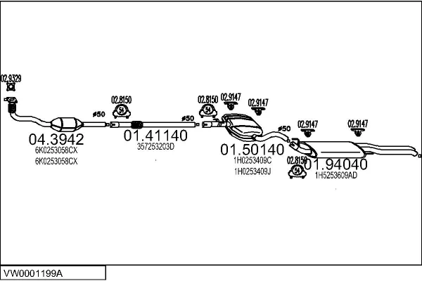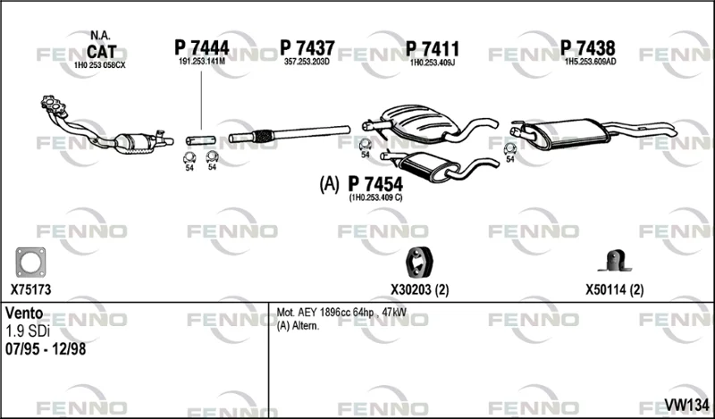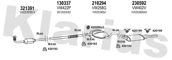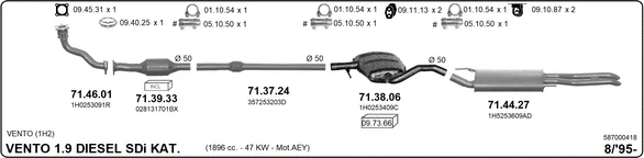 VW VENTO (1H2) 1.9 SDI - Výfukový systém - kompletní od 4/1997 do 9/1998, 1896 ccm, 47 kW, 64 hp, AEY, limuzína
