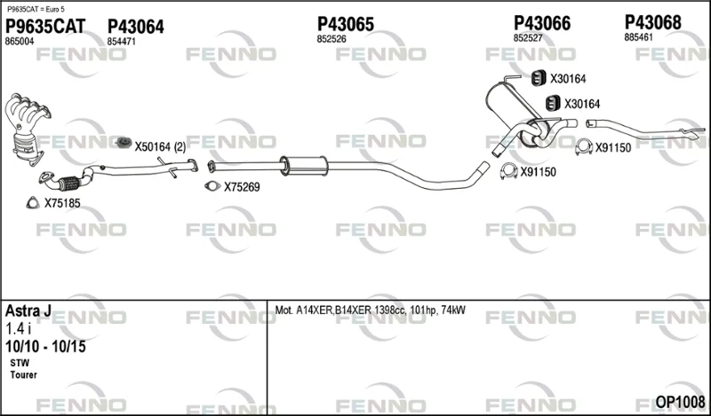 OPEL ASTRA J Sports Tourer (P10) 1.4 (35) - Výfukový systém - kompletní od 10/2010 do 10/2015, 1398 ccm, 74 kW, 101 hp, A 14 XER, B 14 XER, kombi