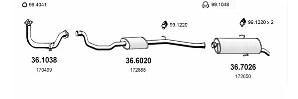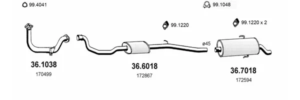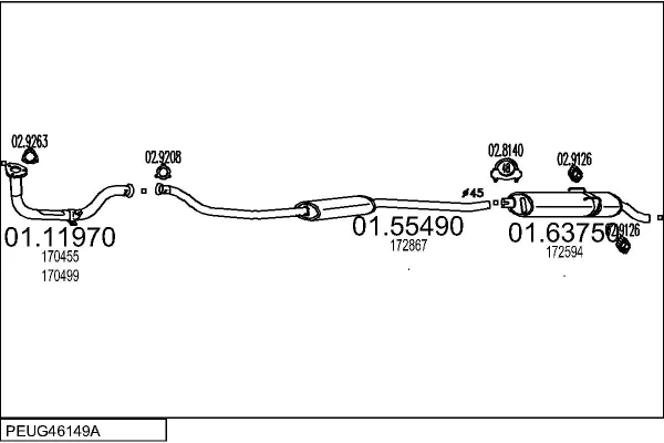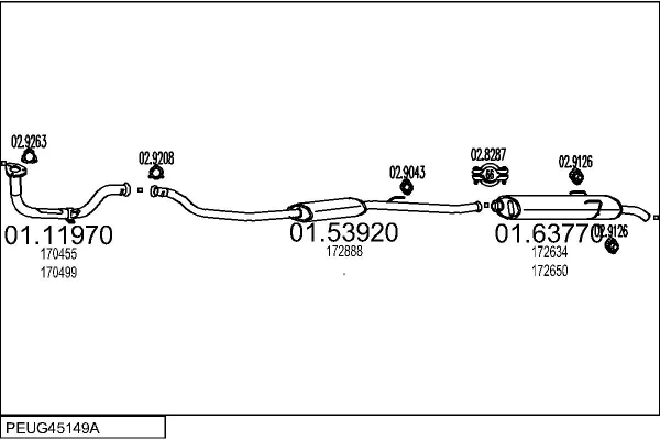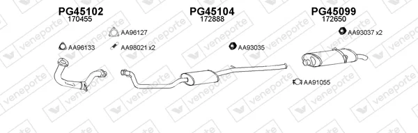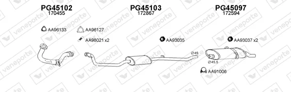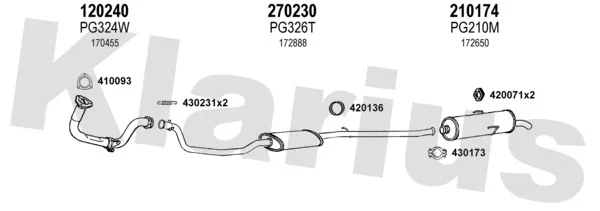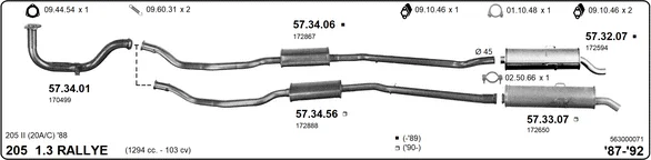 PEUGEOT 205 II (20A/C) 1.3 Rallye - Výfukový systém - kompletní od 10/1987 do 10/1990, 1294 ccm, 74 kW, 101 hp, TU24, Šikmá zadní část