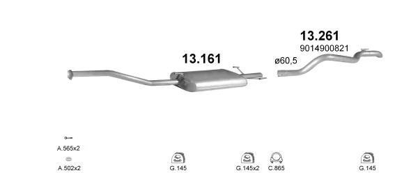 MERCEDES-BENZ SPRINTER 2-t valník/podvozek (B901, B902) 212 D (901.421, 902.412) - Výfukový systém - kompletní od 2/1995 do 4/2000, 2874 ccm, 90 kW, 122 hp, OM 602.980, valník/podvozek