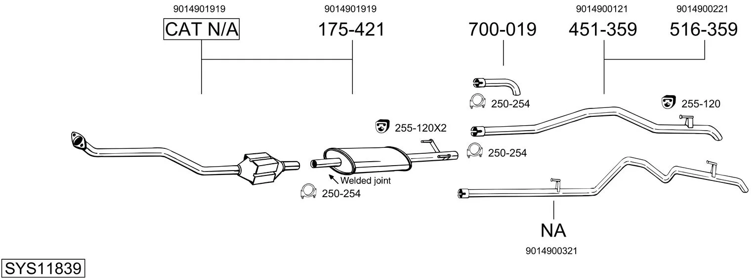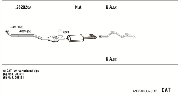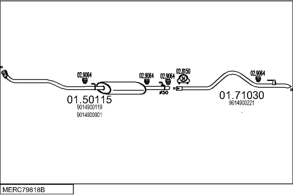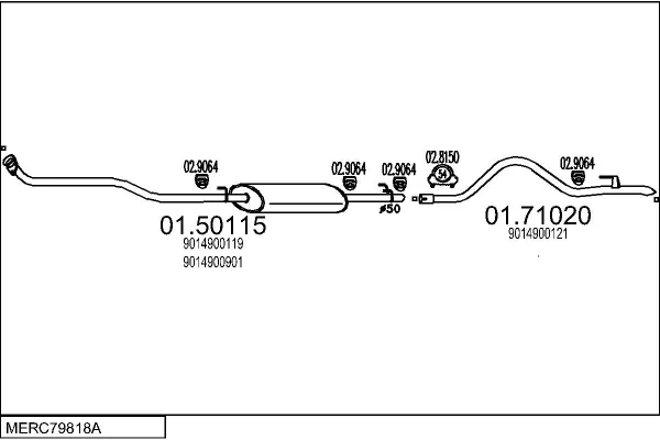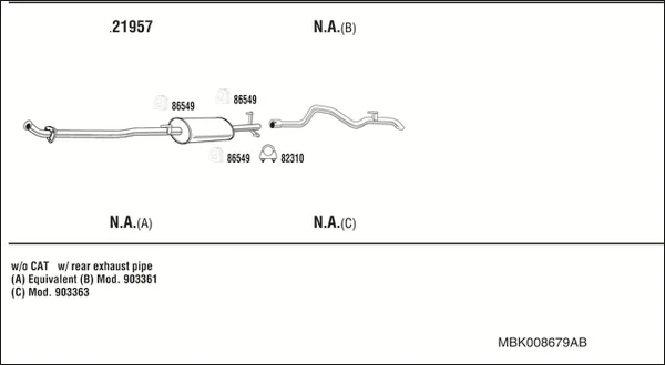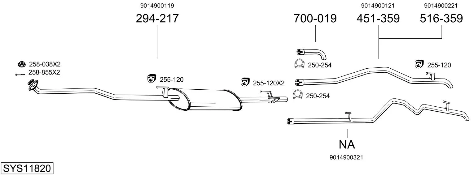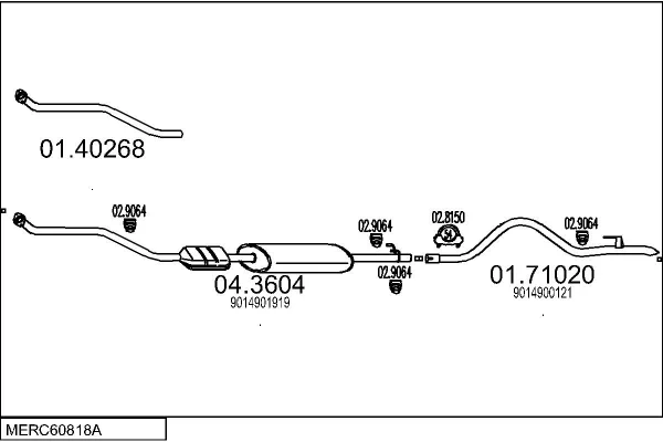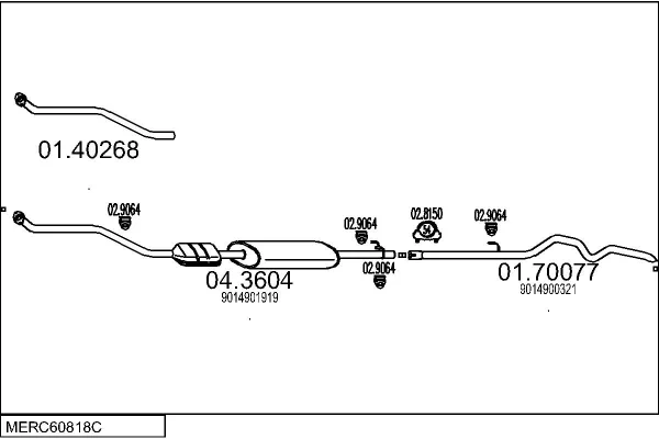 MERCEDES-BENZ SPRINTER 3-t Krabice (B903) 308 D 2.3 (903.361, 903.362, 903.363) - Výfukový systém - kompletní od 2/1995 do 4/2000, 2299 ccm, 58 kW, 79 hp, OM 601.943, Krabice