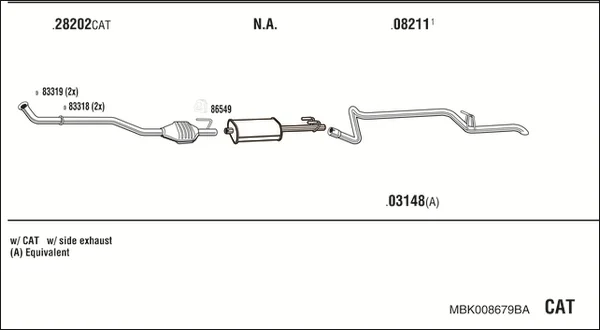 | Druh katalyzátoru | Pro vozidla bez katalyzátoru |