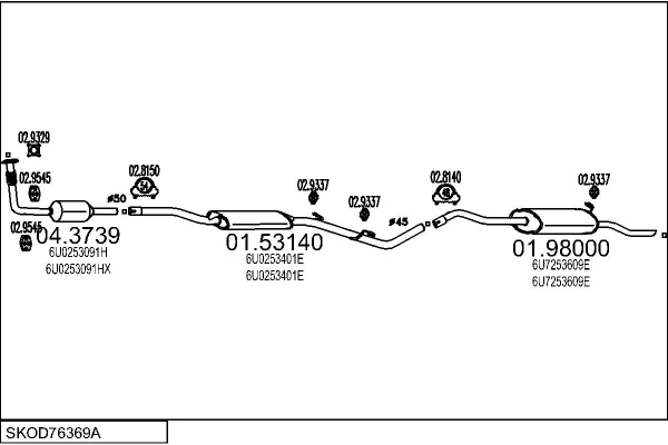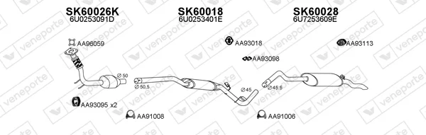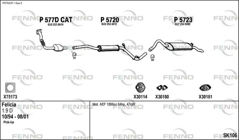 SKODA FELICIA I pick-up (6UF, 6U7) 1.9 D - Výfukový systém - kompletní od 6/1997 do 4/2002, 1896 ccm, 47 kW, 64 hp, AEF, pick-up