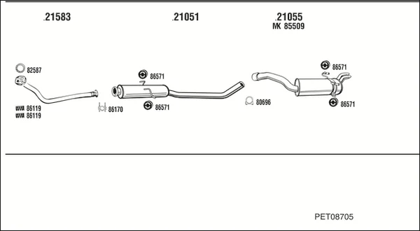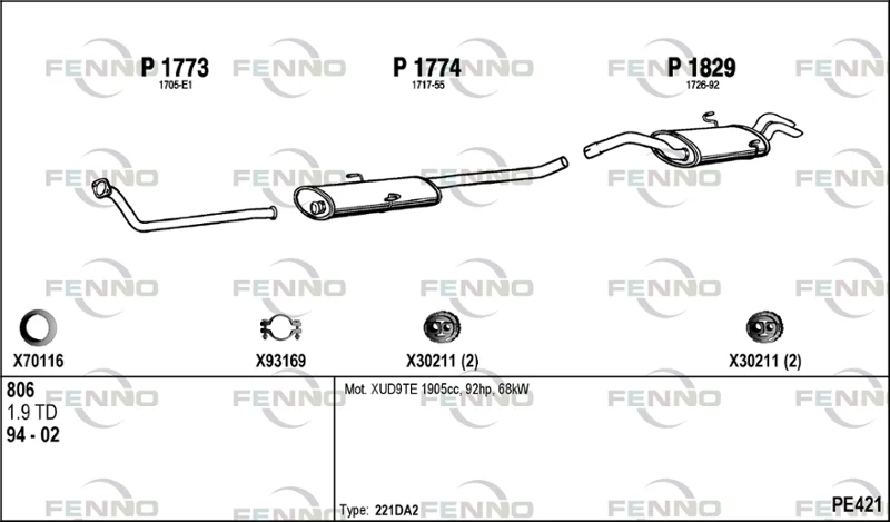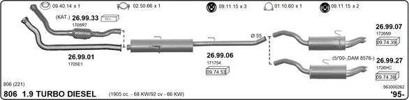 PEUGEOT 806 (221) 1.9 TD - Výfukový systém - kompletní od 5/1997 do 8/2002, 1905 ccm, 68 kW, 92 hp, D8B (XUD9TE), velkoprostorová limuzína