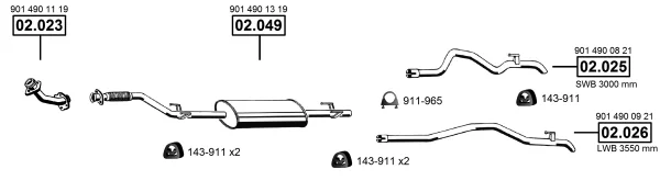 MERCEDES-BENZ SPRINTER 2-t Krabice (B901, B902) 212 D (901.461, 901.462, 902.461, 902.462) - Výfukový systém - kompletní od 2/1995 do 4/2000, 2874 ccm, 90 kW, 122 hp, OM 602.980, Krabice