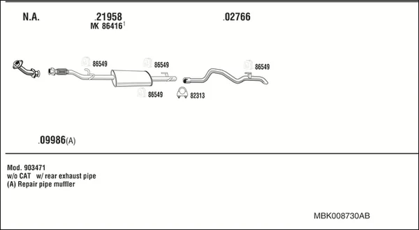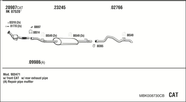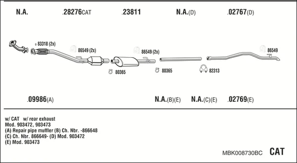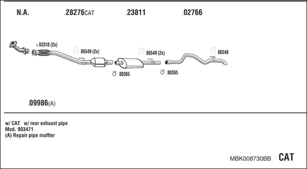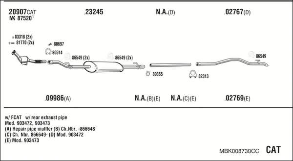 MERCEDES-BENZ SPRINTER 3-t autobus (B903) 312 D 2.9 (903.471, 903.472, 903.473) - Výfukový systém - kompletní od 2/1995 do 4/2000, 2874 ccm, 90 kW, 122 hp, OM 602.980, autobus