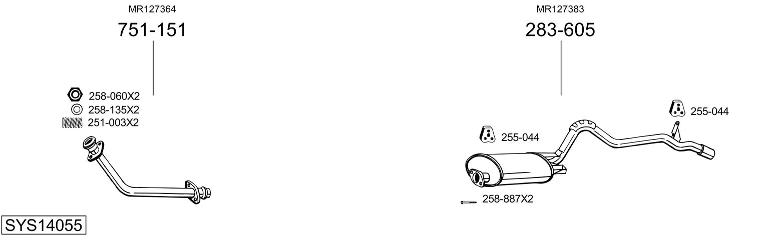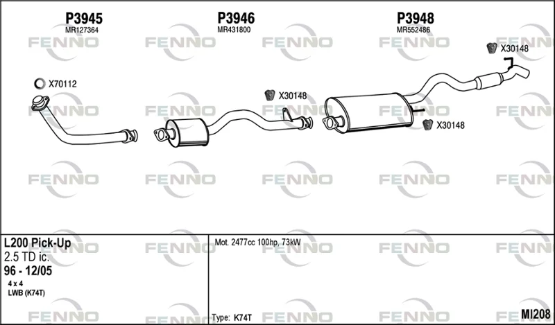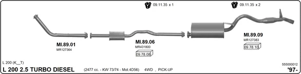 MITSUBISHI L200 (K7_T, K6_T, K5_T) 2.5 TD 4WD (K74T) - Výfukový systém - kompletní od 6/1996 do 12/2007, 2477 ccm, 73 kW, 99 hp, 4D56-TD, pick-up