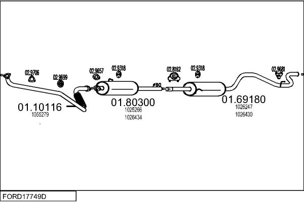 FORD TRANSIT valník/podvozek (E_ _) 2.5 TD (EME/L/S, ENE/L/S) - Výfukový systém - kompletní od 8/1994 do 3/2000, 2496 ccm, 63 kW, 85 hp, 4GA, 4GB, 4GC, 4GD, 4GE, 4GF, valník/podvozek