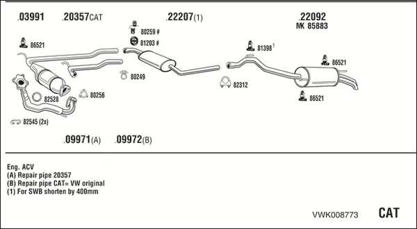 VW TRANSPORTER T4 Krabice (70A, 70H, 7DA, 7DH) 2.5 TDI - Výfukový systém - kompletní od 9/1995 do 4/2003, 2461 ccm, 75 kW, 102 hp, ACV, AUF, AYC, Krabice