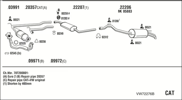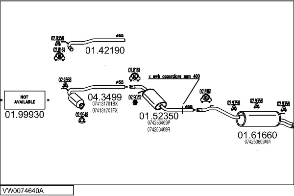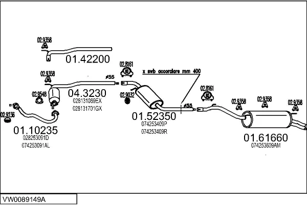 VW TRANSPORTER T4 valník/podvozek (70E, 70L, 70M, 7DE, 7DL, 7DM 2.5 TDI - Výfukový systém - kompletní od 9/1995 do 4/2003, 2461 ccm, 75 kW, 102 hp, ACV, AUF, AYC, valník/podvozek
