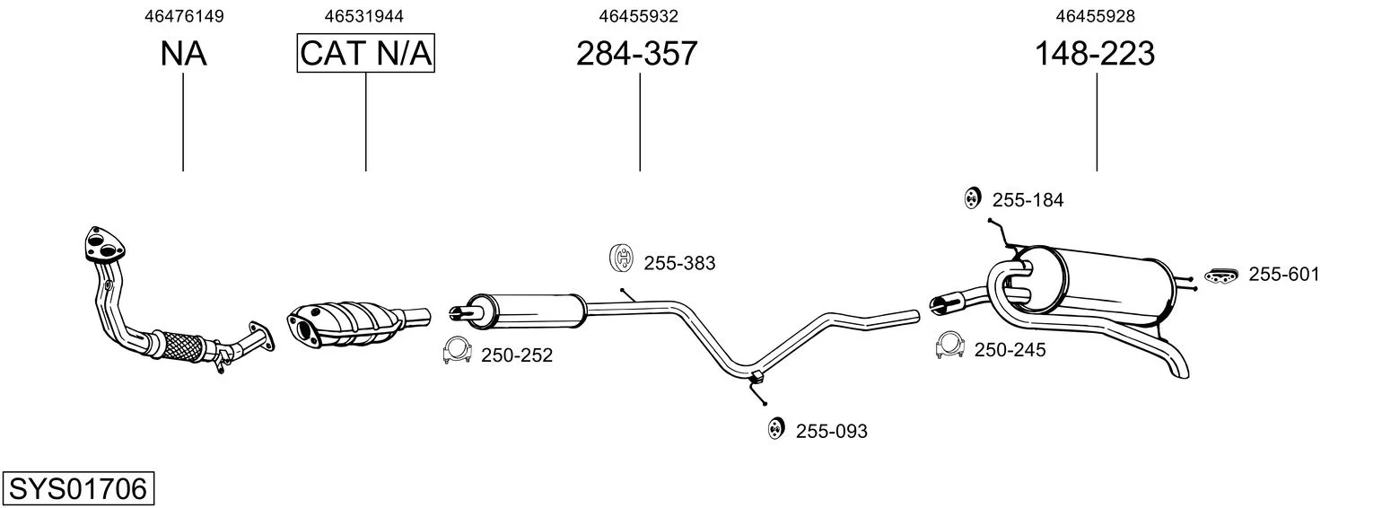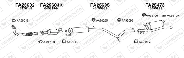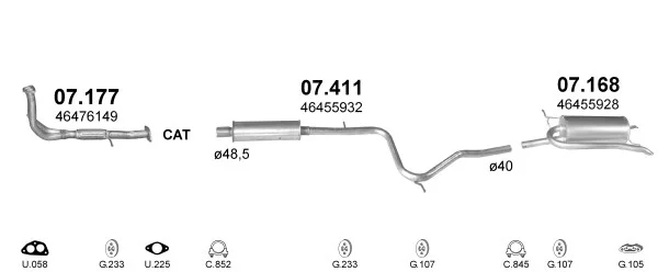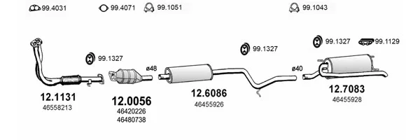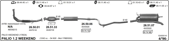 FIAT PALIO Weekend (178_, 173_, 373_, 374_, 171_) 1.2 - Výfukový systém - kompletní od 4/1996 do 2/2004, 1242 ccm, 54 kW, 73 hp, 178 B5.000, kombi