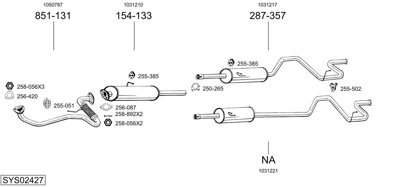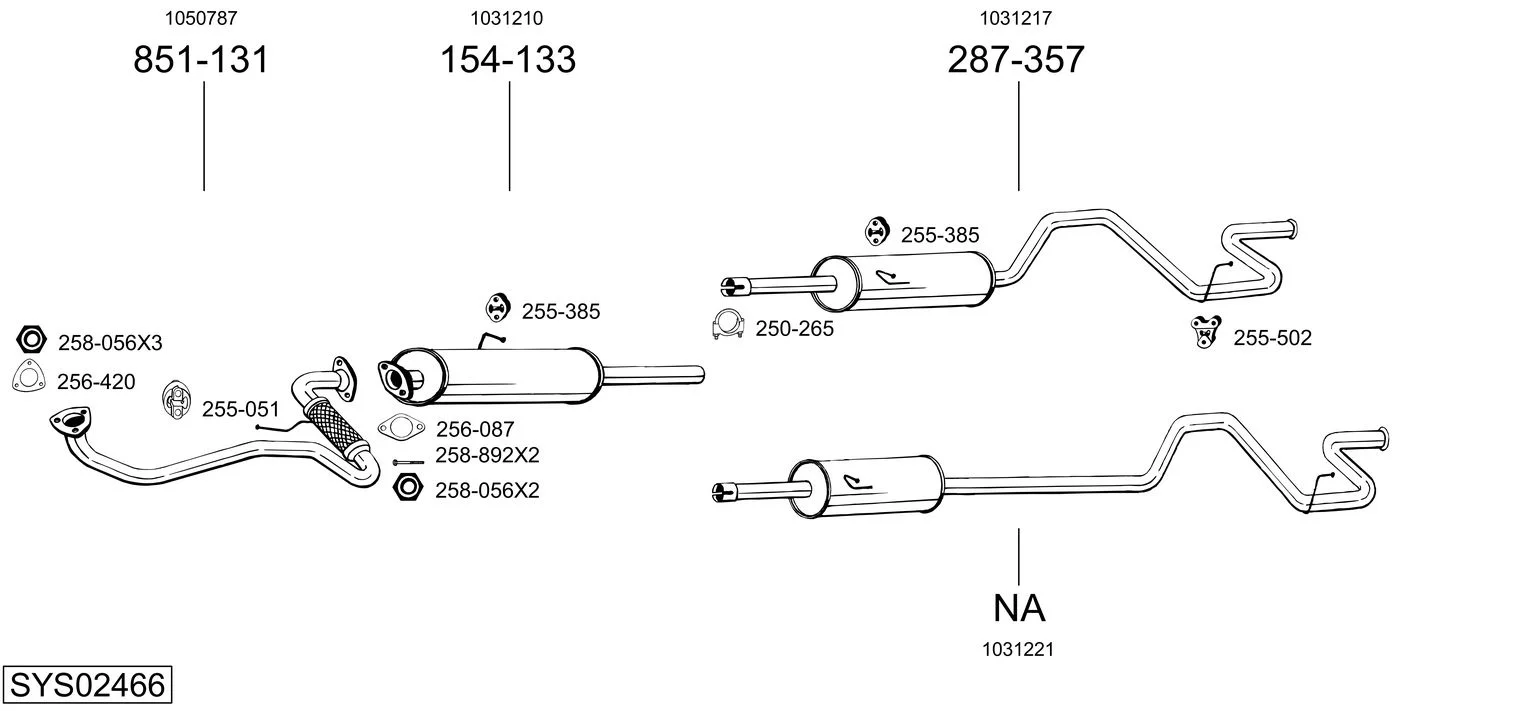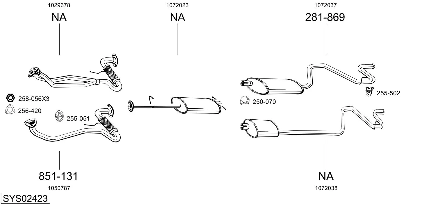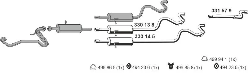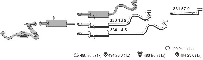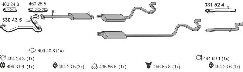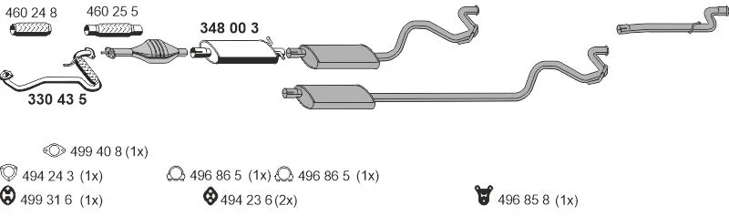 FORD TRANSIT valník/podvozek (E_ _) 2.5 DI (EML/S, ENL/S) - Výfukový systém - kompletní od 8/1994 do 3/2000, 2496 ccm, 51 kW, 69 hp, 4FA, 4FB, 4FC, 4FD, valník/podvozek