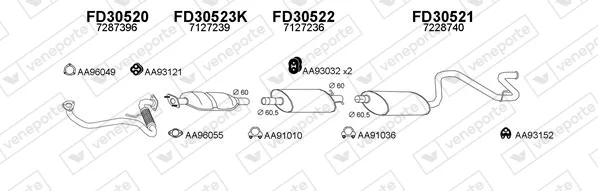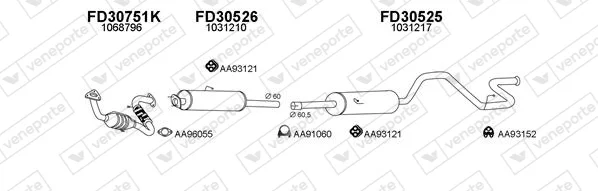 FORD TRANSIT valník/podvozek (E_ _) 2.5 DI (EML/S, ENL/S) - Výfukový systém - kompletní od 8/1994 do 3/2000, 2496 ccm, 51 kW, 69 hp, 4FA, 4FB, 4FC, 4FD, valník/podvozek