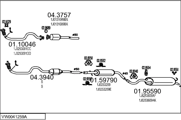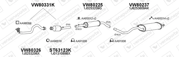 VW GOLF IV (1J1) 1.4 16V - Výfukový systém - kompletní od 10/1997 do 5/2004, 1390 ccm, 55 kW, 75 hp, AHW, AKQ, APE, AXP, BCA, Šikmá zadní část