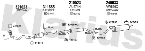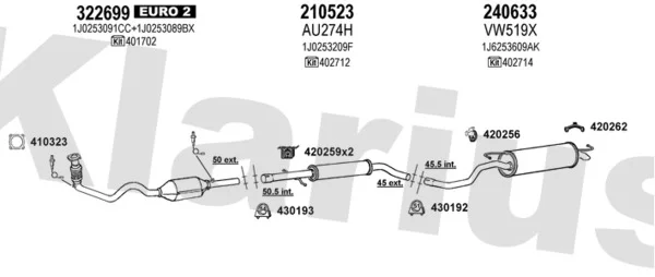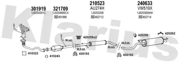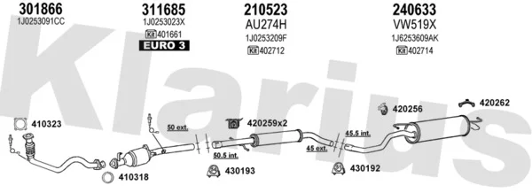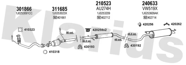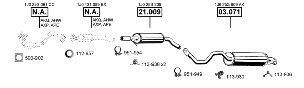 VW GOLF IV (1J1) 1.4 16V - Výfukový systém - kompletní od 10/1997 do 5/2004, 1390 ccm, 55 kW, 75 hp, AHW, AKQ, APE, AXP, BCA, Šikmá zadní část