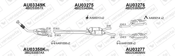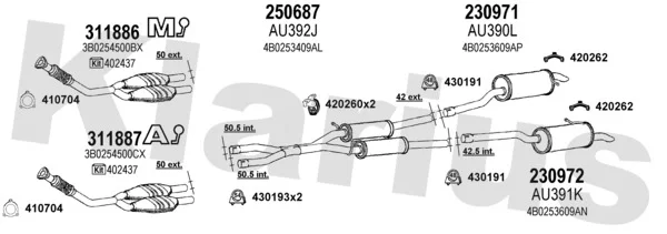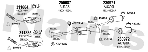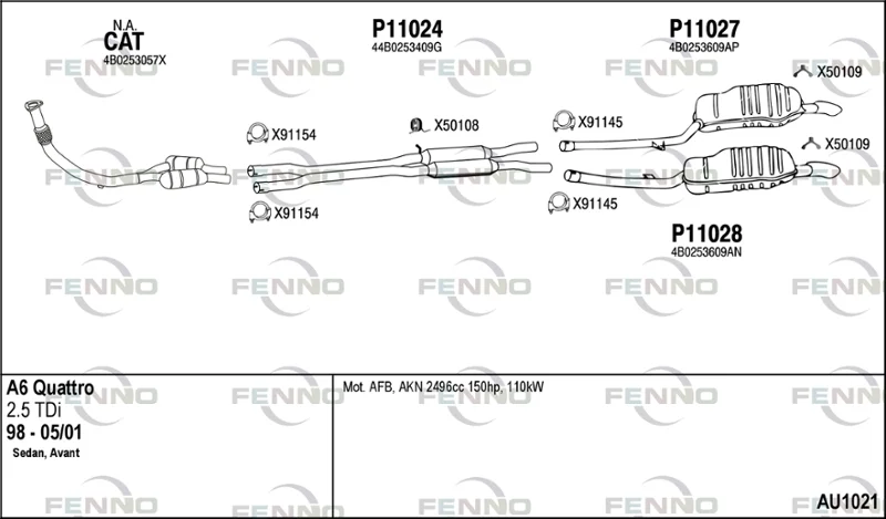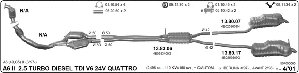 AUDI A6 C5 (4B2, 4B4) 2.5 TDI quattro - Výfukový systém - kompletní od 7/1997 do 1/2005, 2496 ccm, 110 kW, 150 hp, AFB, AKN, limuzína