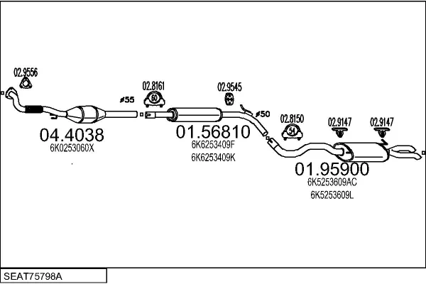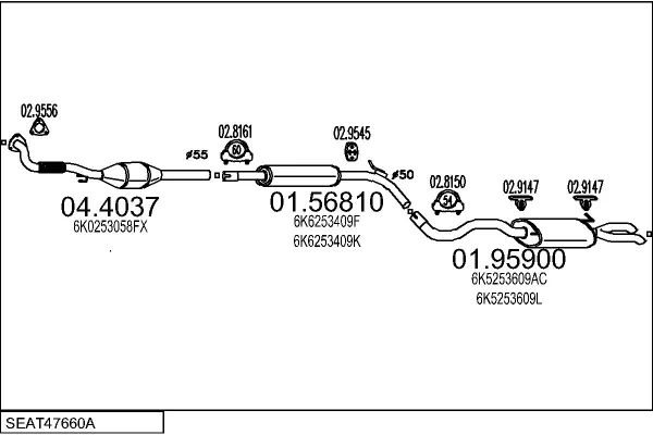 SEAT CORDOBA Vario (6K5) 1.9 TDI - Výfukový systém - kompletní od 7/1997 do 12/2002, 1896 ccm, 81 kW, 110 hp, AFN, ASV, kombi