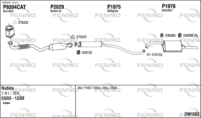 CHEVROLET NUBIRA limuzína 1.4 - Výfukový systém - kompletní od 1/2006 do 12/2008, 1399 ccm, 70 kW, 95 hp, L14(85CUL4), limuzína