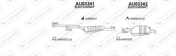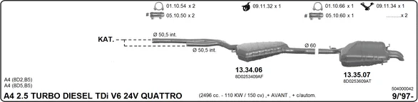 AUDI A4 B5 (8D2) 2.5 TDI quattro - Výfukový systém - kompletní od 9/1997 do 11/2000, 2496 ccm, 110 kW, 150 hp, AFB, AKN, limuzína