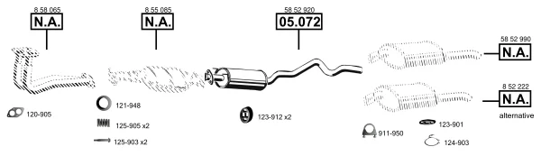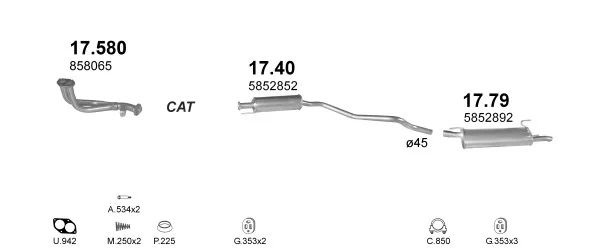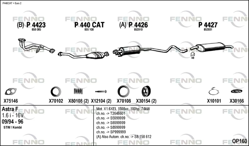 OPEL ASTRA F kombi (T92) 1.6 i 16V (F35, M35) - Výfukový systém - kompletní od 8/1994 do 1/1998, 1598 ccm, 74 kW, 100 hp, X 16 XEL, kombi
