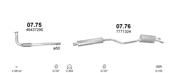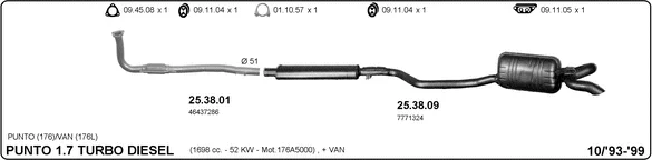 FIAT PUNTO Van (176_) 1.7 TD - Výfukový systém - kompletní od 4/1996 do 2/2000, 1698 ccm, 52 kW, 71 hp, 176 A5.000, Schránky/šikmá záď