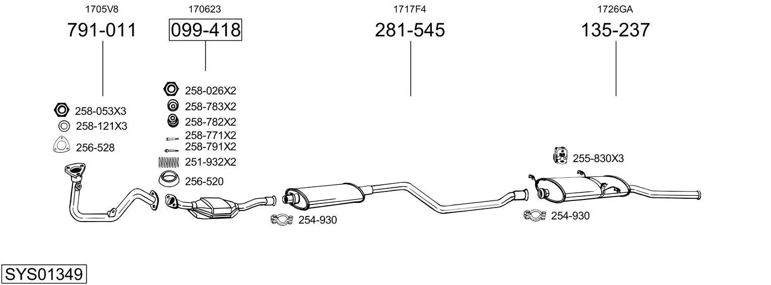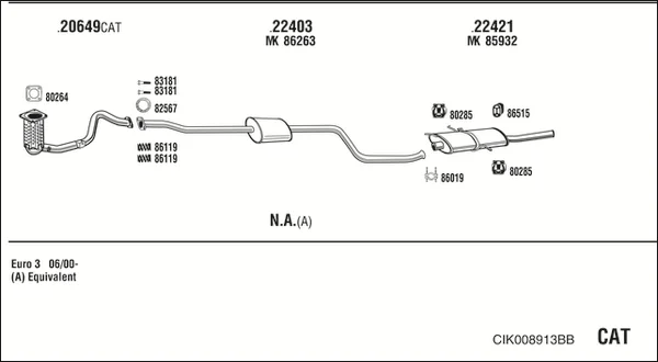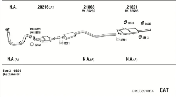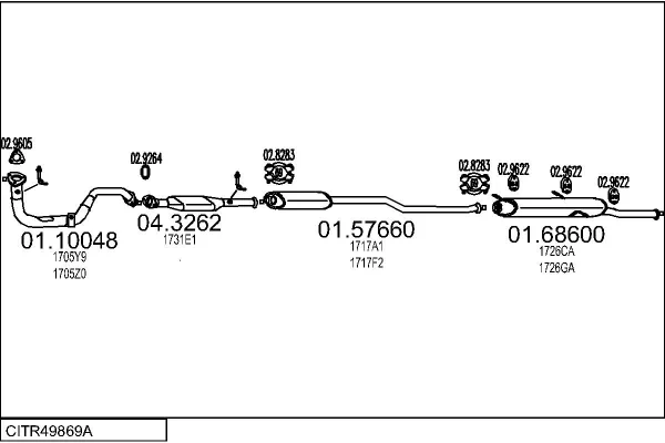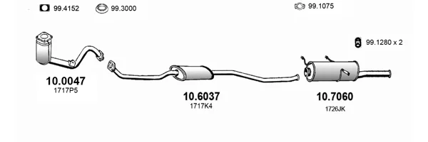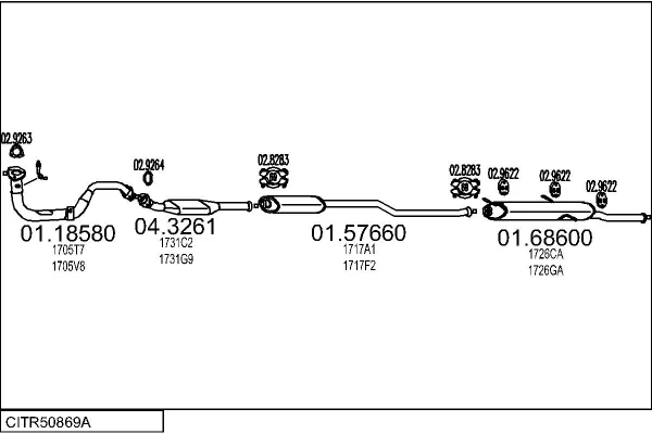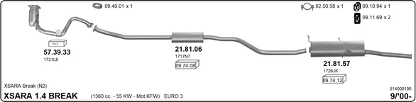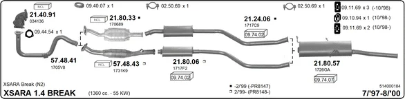 CITROËN XSARA Break (N2) 1.4 i - Výfukový systém - kompletní od 10/1997 do 8/2005, 1360 ccm, 55 kW, 75 hp, KFW (TU3JP), KFX (TU3JP), kombi