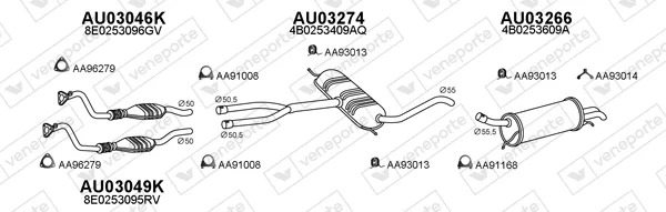 AUDI A6 C5 Avant (4B5, 4B6) 2.8 - Výfukový systém - kompletní od 12/1997 do 1/2005, 2771 ccm, 142 kW, 193 hp, ACK, ALG, AMX, APR, AQD, kombi