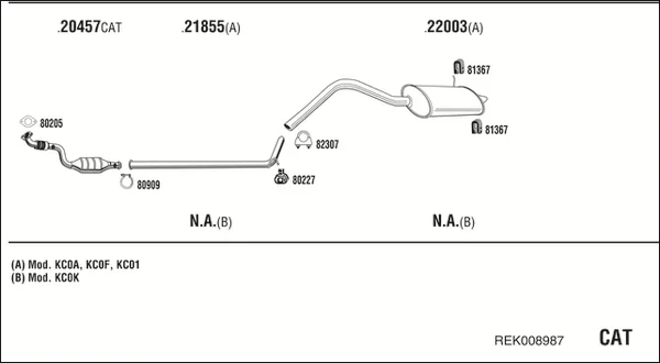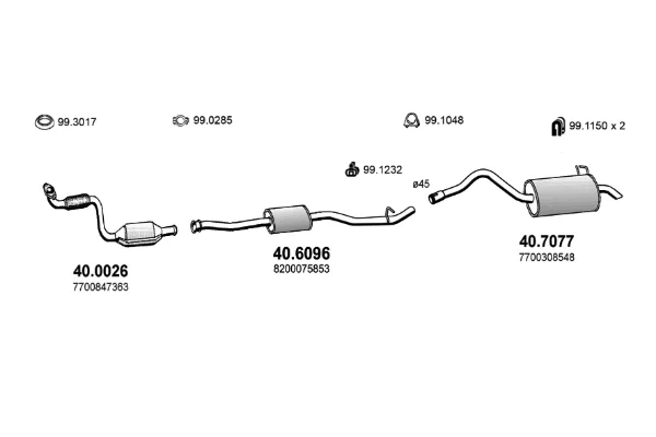 RENAULT KANGOO (KC0/1_) 1.2 (KC0A, KC0K, KC0F, KC01) - Výfukový systém - kompletní od 8/1997, 1149 ccm, 43 kW, 58 hp, D7F 710, D7F 720, D7F 722, D7F 726, D7F 744, D7F 746, velkoprostorová limuzína