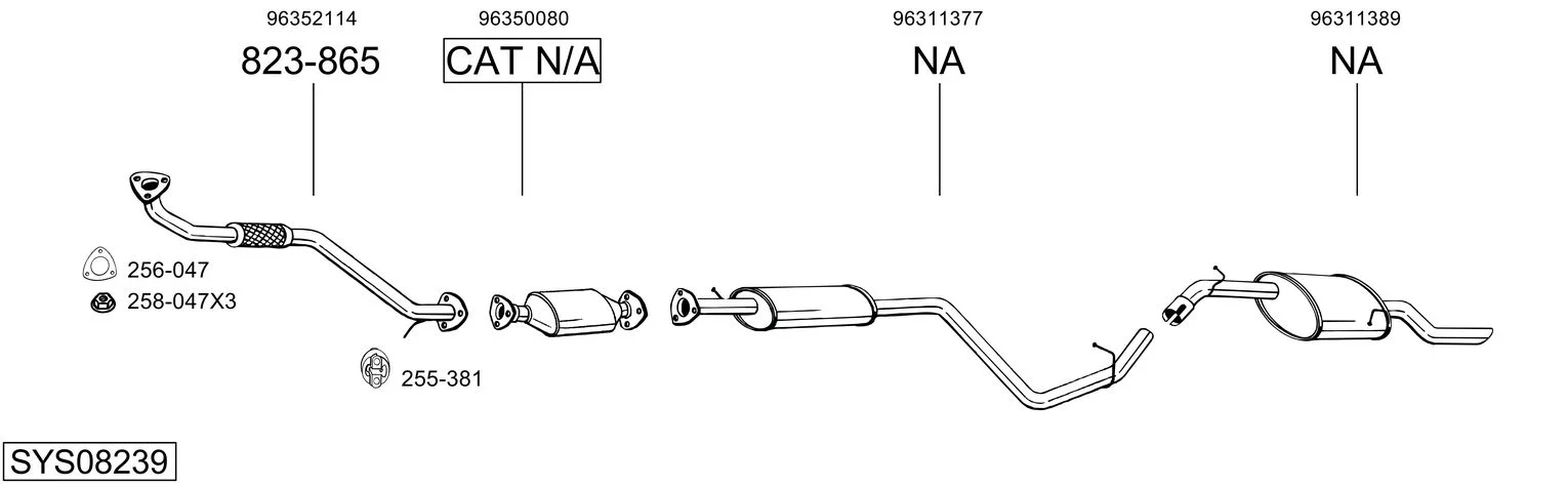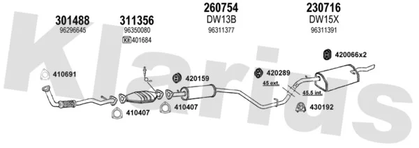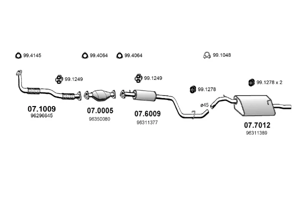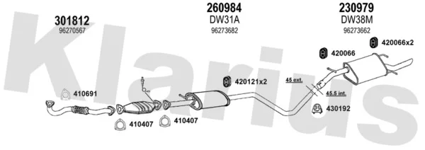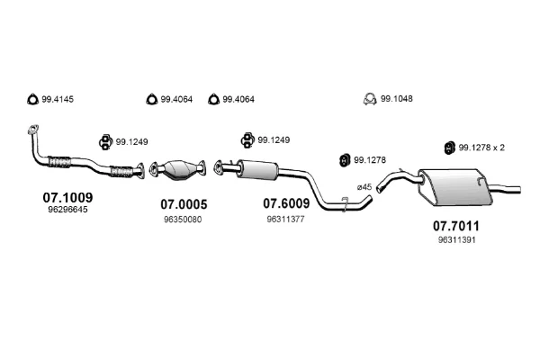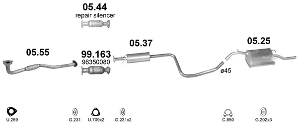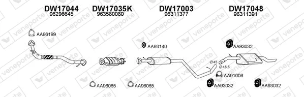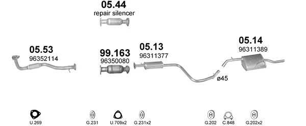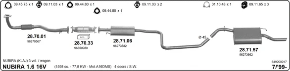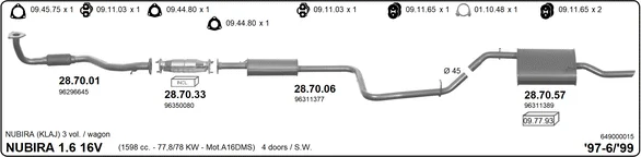 DAEWOO NUBIRA Wagon (J100) 1.6 16V - Výfukový systém - kompletní od 5/1997 do 5/1999, 1598 ccm, 78 kW, 106 hp, A16DMS, kombi