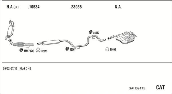 SAAB 9-3 (YS3F, E79, D79, D75) 2.0 t BioPower XWD - Výfukový systém - kompletní od 1/2008 do 2/2015, 1998 ccm, 154 kW, 210 hp, B207R, limuzína