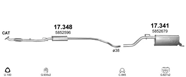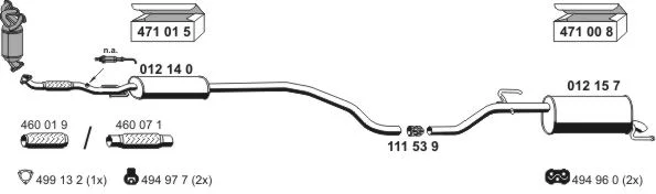 OPEL CORSA D (S07) 1.0 (L08, L68) - Výfukový systém - kompletní od 12/2009 do 8/2014, 998 ccm, 48 kW, 65 hp, A 10 XEP, Šikmá zadní část