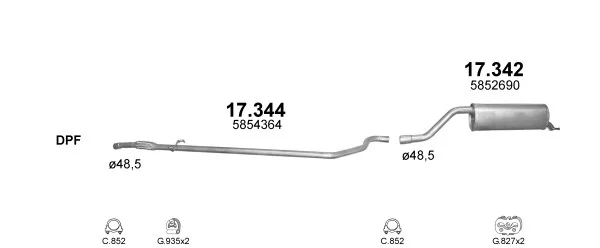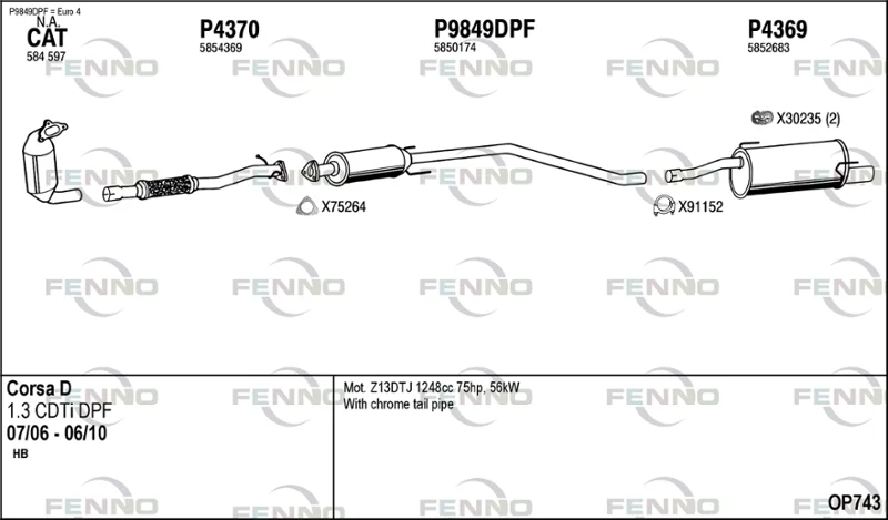 OPEL CORSA D Schránky/šikmá záď (S07) 1.3 CDTI (L08) - Výfukový systém - kompletní od 7/2006 do 8/2014, 1248 ccm, 55 kW, 75 hp, A 13 DTC, Z 13 DTJ, Schránky/šikmá záď