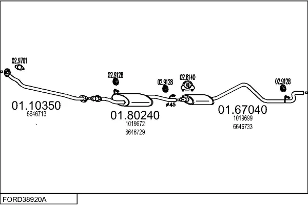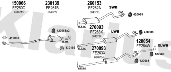 FORD TRANSIT autobus (E_ _) 2.0 - Výfukový systém - kompletní od 9/1991 do 9/1994, 1993 ccm, 66 kW, 90 hp, NBA, autobus