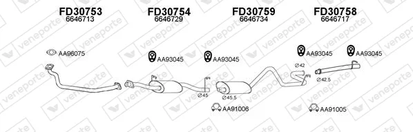 FORD TRANSIT Krabice (E_ _) 2.0 - Výfukový systém - kompletní od 9/1991 do 6/1994, 1993 ccm, 66 kW, 90 hp, NBA, Krabice