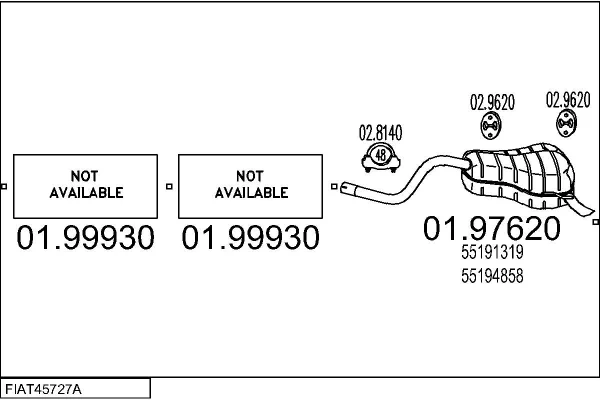 FIAT IDEA (350_) 1.4 LPG - Výfukový systém - kompletní od 3/2009, 1368 ccm, 57 kW, 78 hp, 350 A1.000, velkoprostorová limuzína
