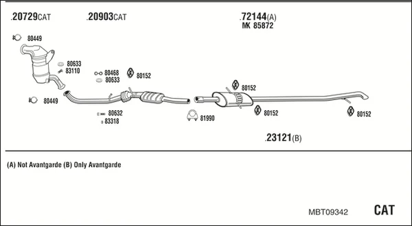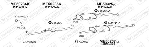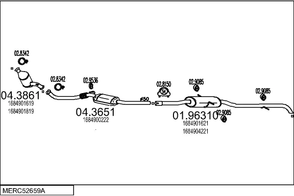 MERCEDES-BENZ A-CLASS (W168) A 170 CDI (168.008) - Výfukový systém - kompletní od 7/1998 do 2/2001, 1689 ccm, 66 kW, 90 hp, OM 668.940, Šikmá zadní část